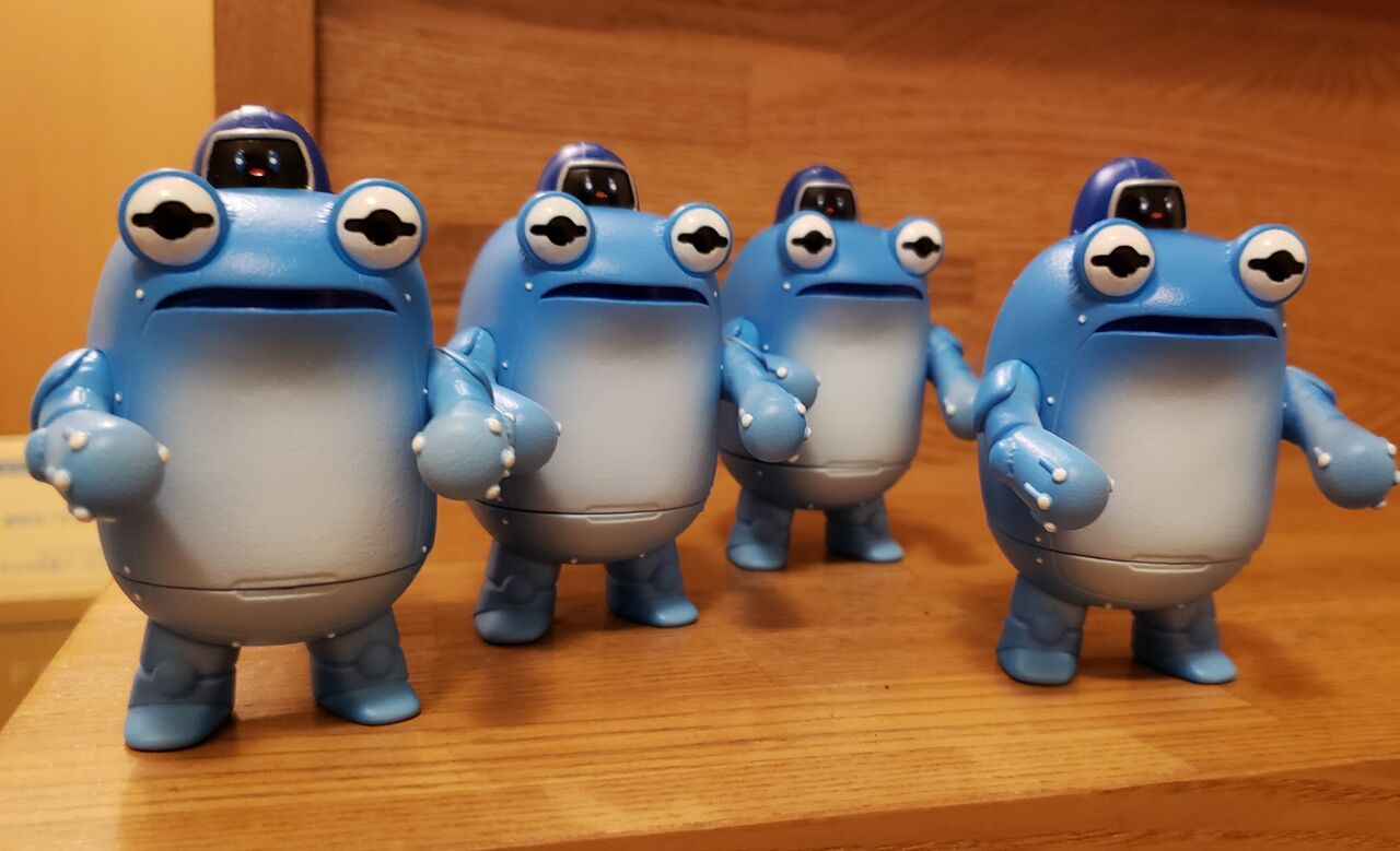 搭乗員はオタマジャクシの様な防護服を着込み、カエル式歩行メカのケローネンを操作します。