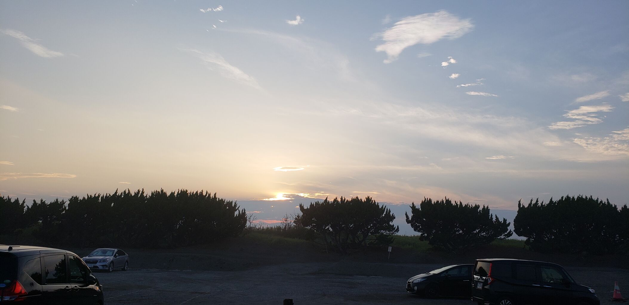 海と反対側に沈む夕陽が綺麗でした。