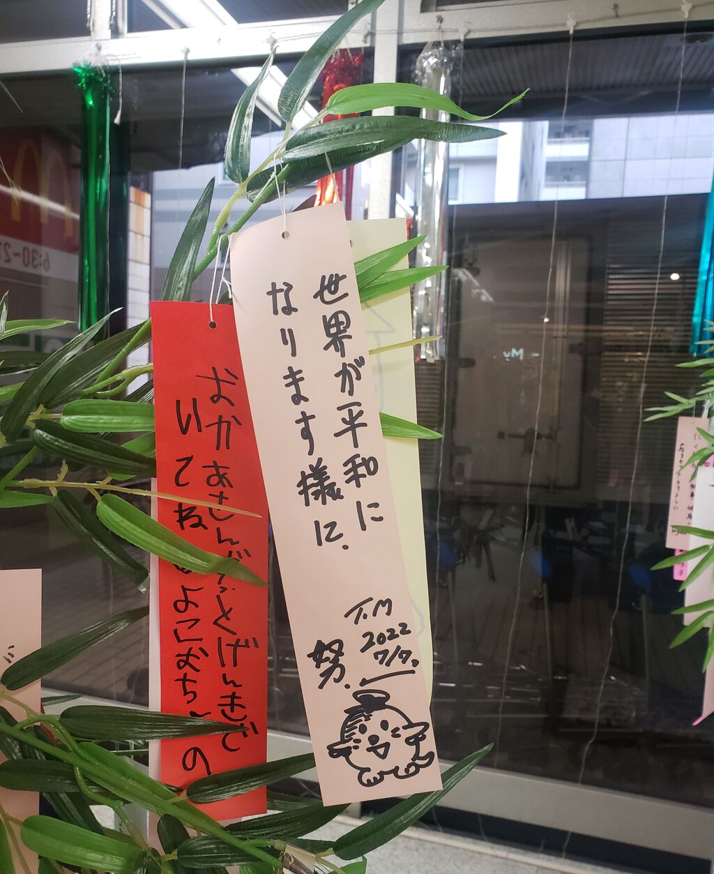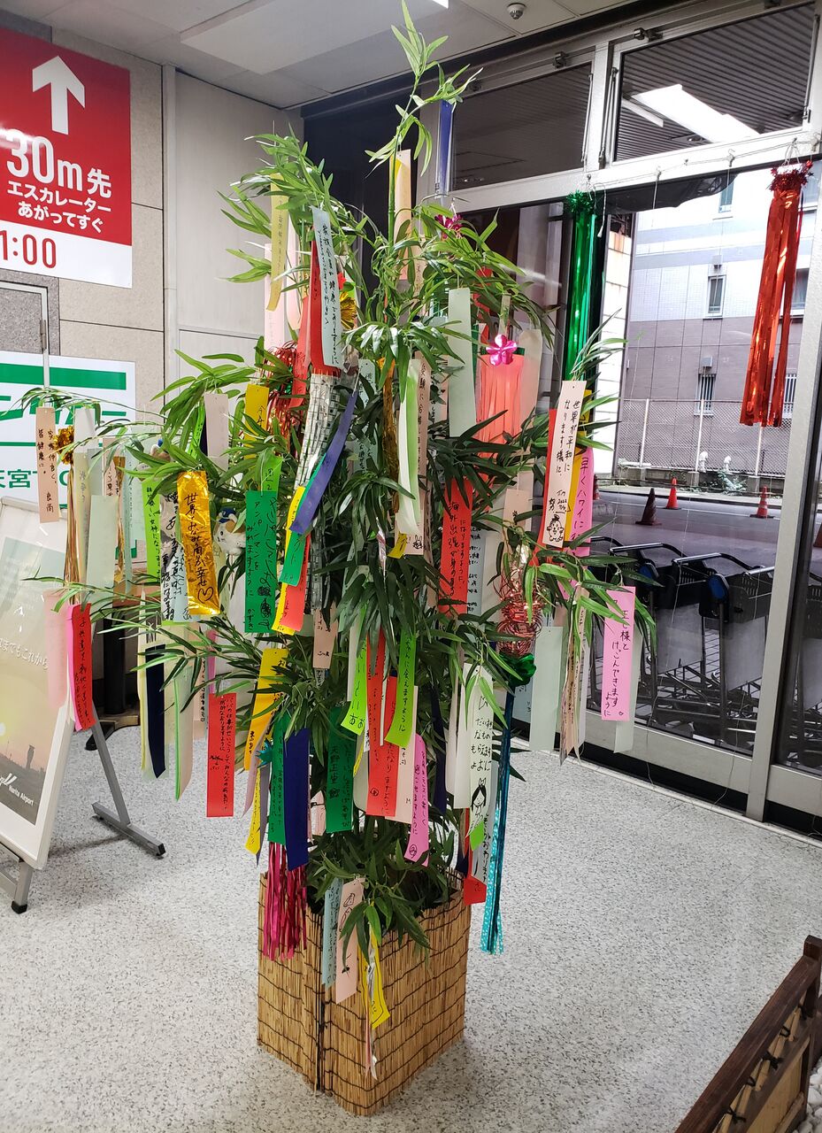 勤め先近くにあります地下鉄水天宮前駅に続きます、東京エアーシティターミナル通称T-CAT構内で、七夕の季節に合わせまして一般利用客から短冊を集めまして一定期間飾ってありました。