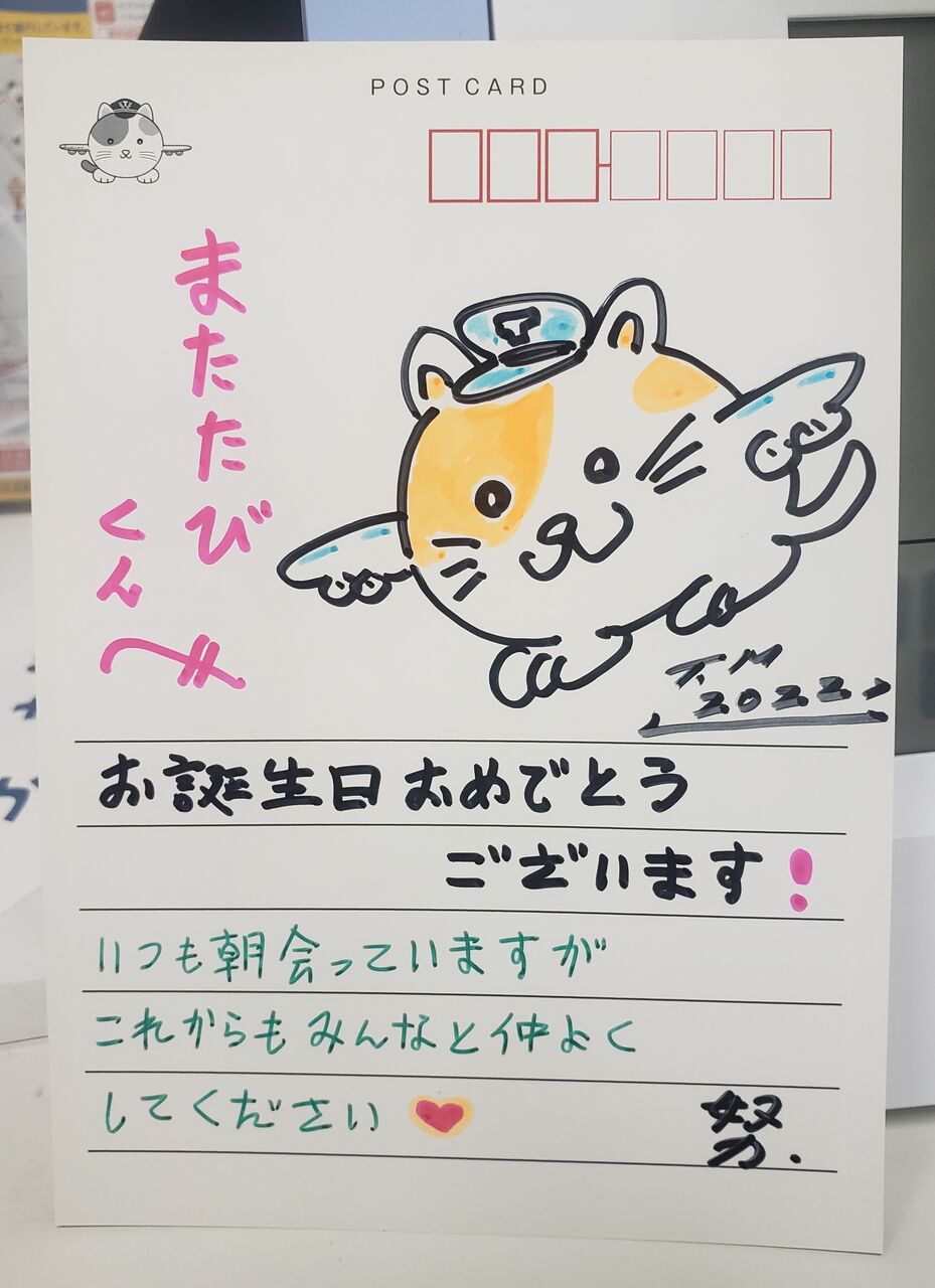 またたびくんのバースデー企画としまして、T-CATではお祝いの絵葉書を毎年募集しております。