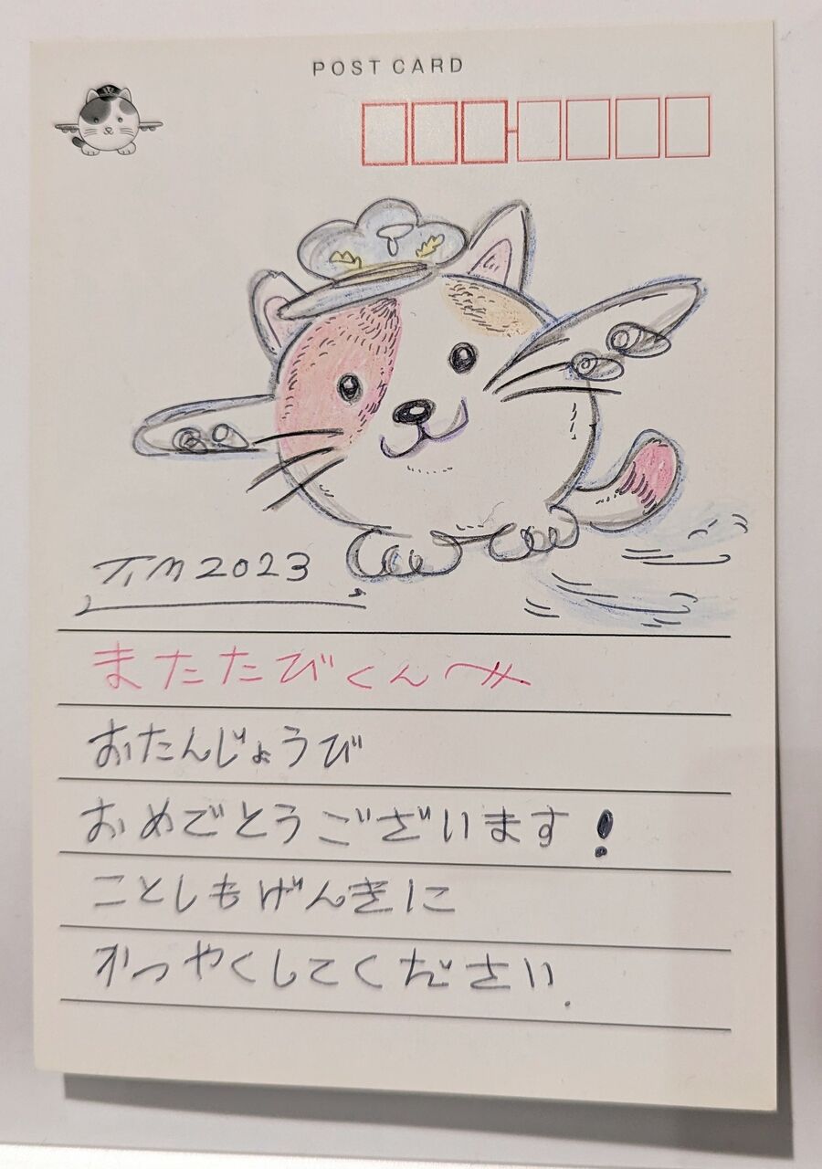 またたびくんバースデー企画に応募しました、僕が描いたイラストハガキです。