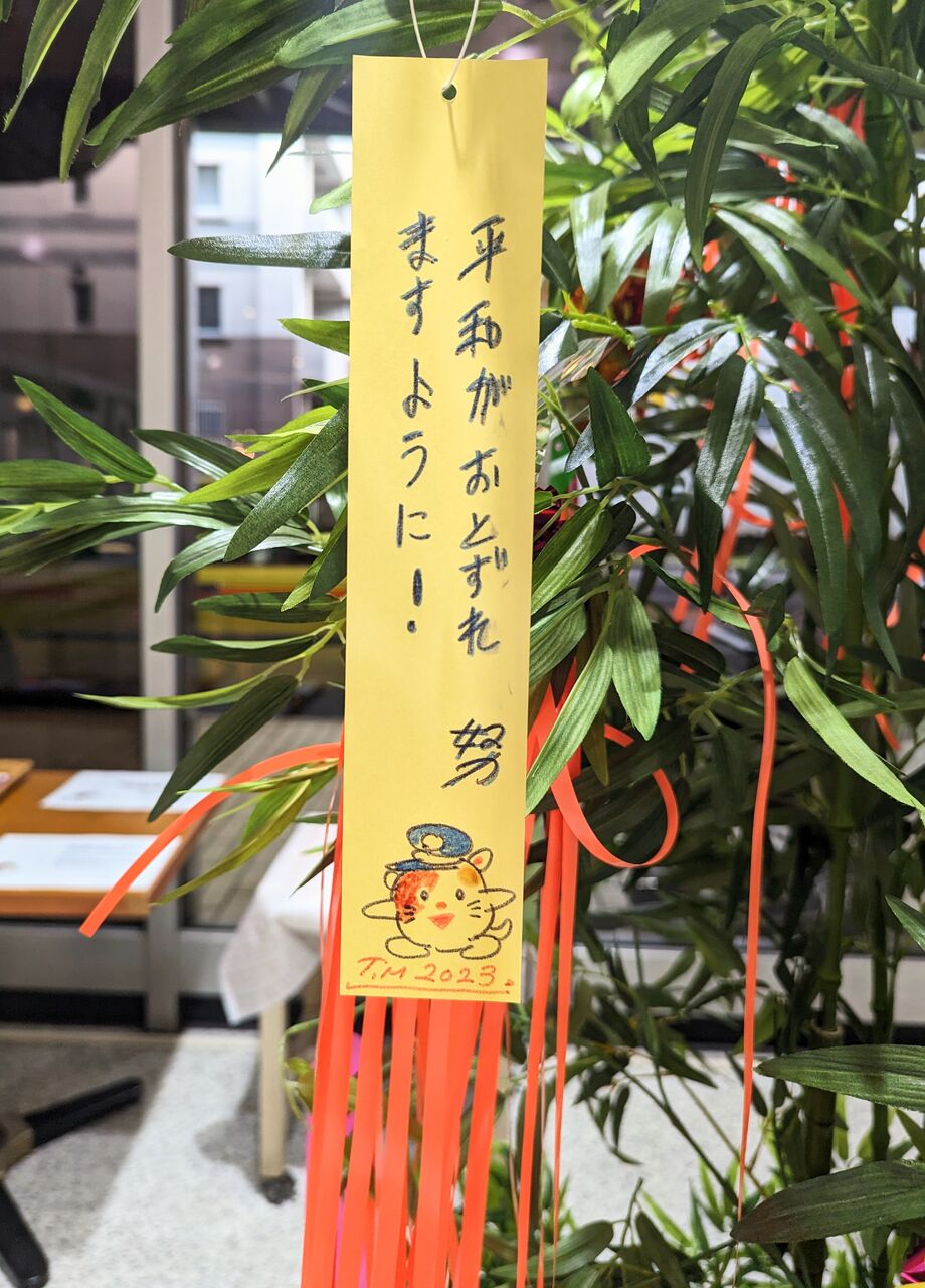 こちらも毎年行なわれていまして、短冊に願い事を書いて吊るしておきました。